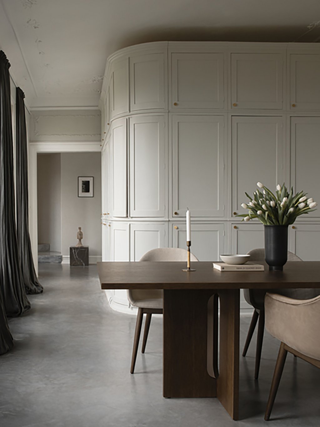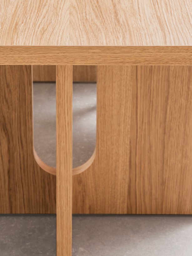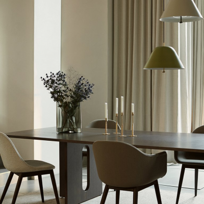 Dizajnérka Danielle Siggerud prináša vo svojej kolekcii Androgyne odvážny a sebavedomý pohľad na jedálenský stôl. Umelecká silueta, ktorá vznikla spojením prírodných materiálov a sochárskej formy, vyžaruje eleganciu, ktorá ho predurčuje byť stredobodom každého priestoru. Monumentálnosť stola umocňuje jeho obdĺžnikový tvar. Vďaka svojím rozmerom zaň pohodlne usadíte 8 - 10 osôb.