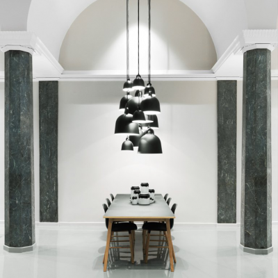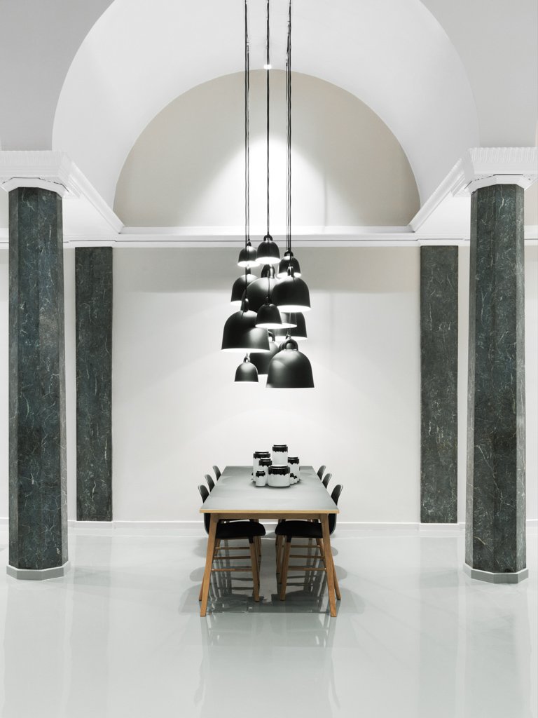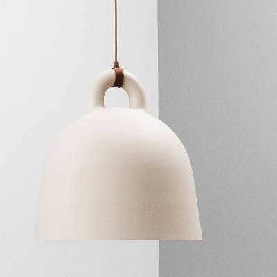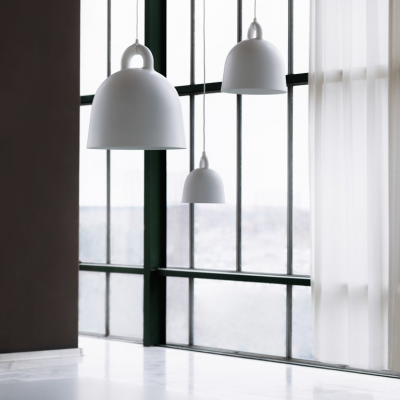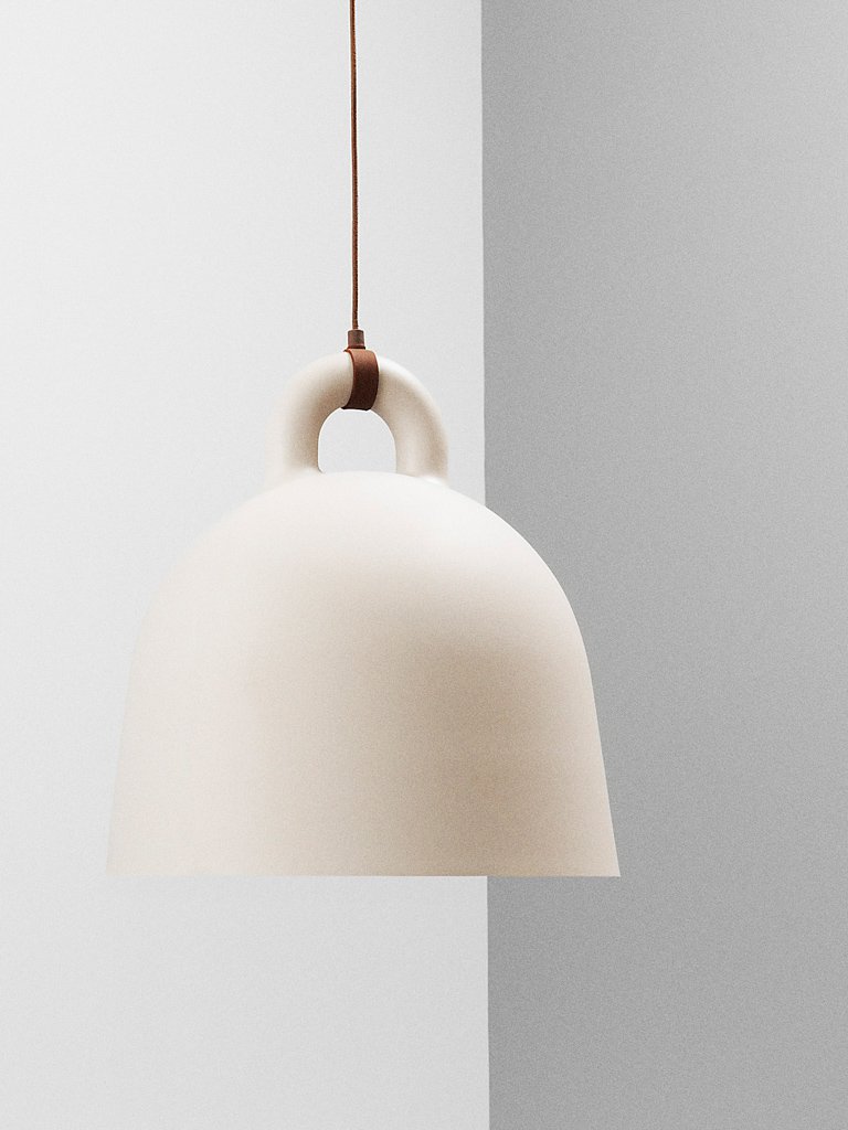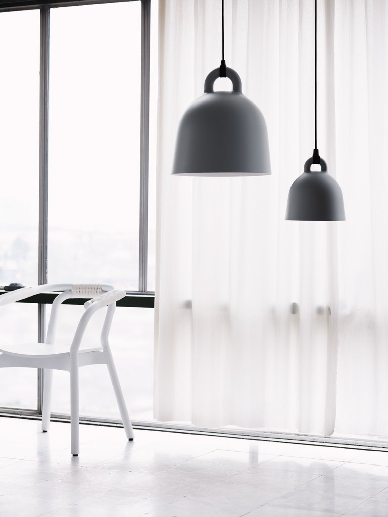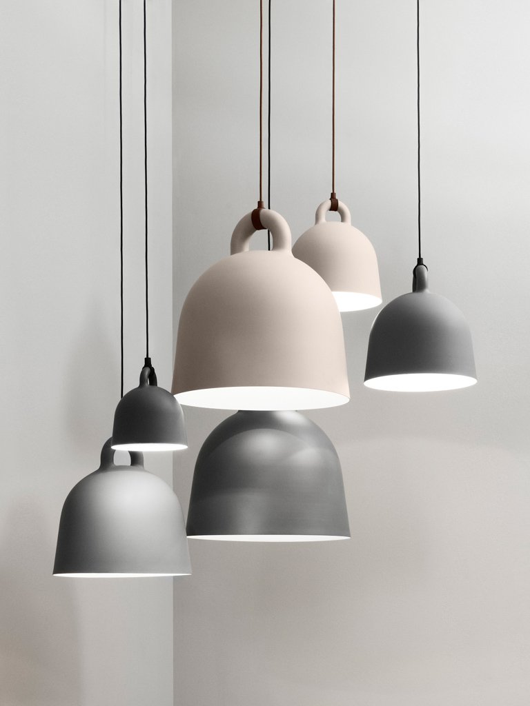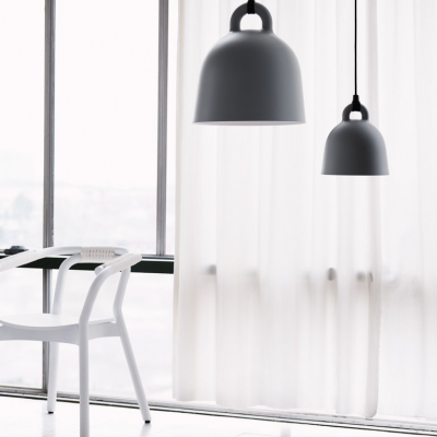 Závesné svietidlá Bell pôsobia na prvý pohľad nápadito a jednotucho zároveň. Vďaka svojmu priemyselnému a pritom priateľskému vzhľadu je táto lampa typu "Down Light" ideálna pre použitie v domácom ale aj verejnom interiéri. Dizajnéri Andreas Lund a Jacob Rudbeck našli svoj východiskový bod v ikonickom tvare zvončeka. Zaoblená silueta a matný povrch žiarovky pôsobia priateľským a útulným dojmom. Biela vnútorná strana odráža svetlo, ktoré dopadá ako kužeľ a poskytuje tak praktické osvetlenie. Návrhári venovali osobitnú pozornosť detailom, pričom moderným spôsobom zdôrazňujú bod zhromažďovania medzi káblom a samotnou lampou. Hmatové rozdiely medzi materiálmi vytvárajú čistý, minimalistický vzhľad. Hladký hliník oproti mäkkej gume vytvára diskrétnu, ale nárazovú hru materiálov, ktorá dodáva dizajnu osobitý šmrnc. Svietidlá Bell sa vďaka širokej veľkostnej variabilite dajú použiť takmer kdekoľvek, v kuchyni, obývacej izbe, spálni, v chodbe či v kancelárskom prostredí.