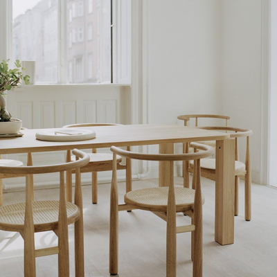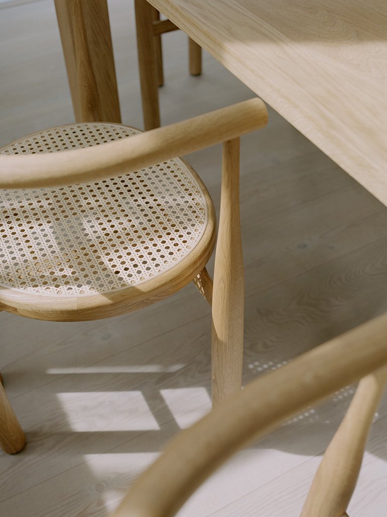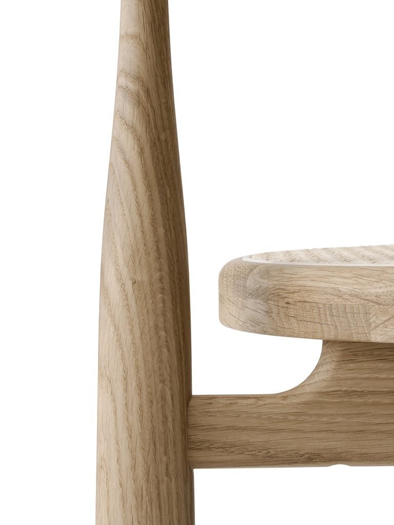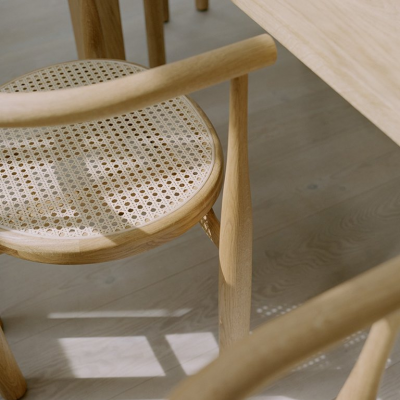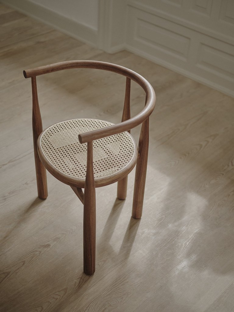 Výrazná a odvážna geometria stoličky Bukowski prevádza jedinečne nápadnú siluetu, okamžite rozpoznateľnú no zároveň nedefinovateľne známu. Hladký, ale rozhodný prechod medzi subtílnym a masívnym tvarom zaoblených nôh rozohráva zaujímavú optickú hru. Nová verzia tejto stoličky je doplnená sedákom z francúzskeho výpletu, ktorý jej prepožičiava elegantnú ľahkosť a jemnejší výraz. Stolička môže byť elegantným doplnkom jedálenského stola, no vďaka svojmu skulpturálnemu tvaru sa uplatní aj ako solitér v priestore.