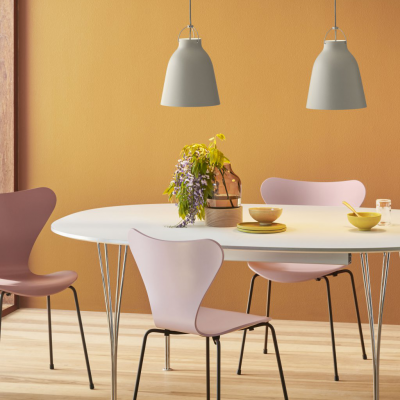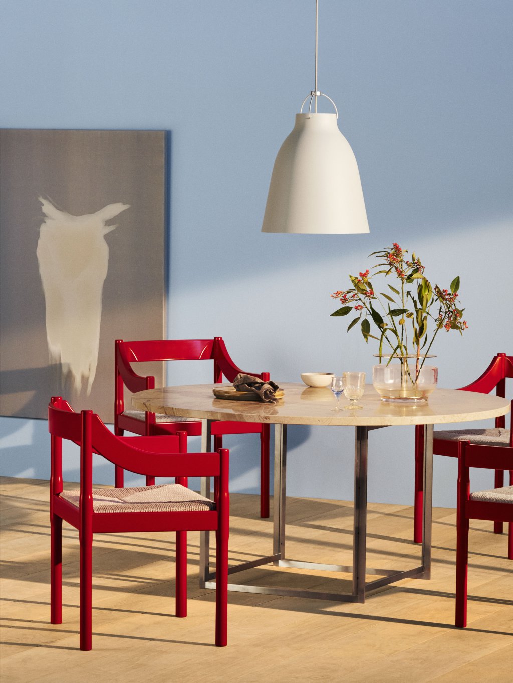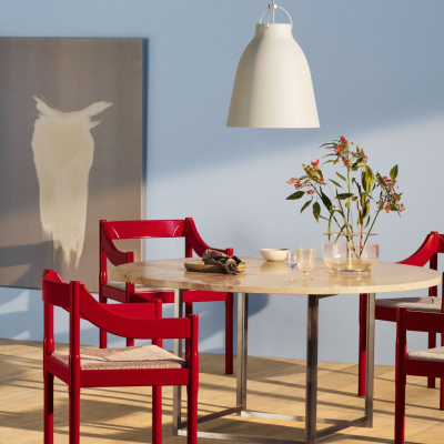 Pútavé závesné svietidlá Carravagio™ boli uvedené na trh v roku 2005 a okamžite si získali status dizajnovej ikony. Vo svietidlách Caravaggio ™ spája návrhárka Cecilie Manz rozpoznateľný tvar s moderným výrazom. Jednoduché nadčasové svietidlo sa skladá z kovového tienidla s jemnými ženskými líniami a pochrómovaného závesného prvku s technickým - mužnejším charakterom. Textilný kábel je obzvlášť dobre integrovaný do dizajnu vďaka čomu nadobúda svietidlo svoj pôsobivý vzhľad. Lampa Caravaggio ™ vrhá koncentrované svetlo nadol osvetľujúce zavesenie aj kábel cez otvor v hornej časti lampy. Hĺbka tienidla zabezpečuje to, že samotný zdroj je skrytý, vďaka čomu Vás nebude oslepovať. Vďaka svojej popularite sa rodina svietidiel Caravaggio rozrástla aj na stojace, stolové lampy a nástenné svietidlá. Dostupné sú v lesklom a matnom povrchu v rôznych farebných prevedeniach.