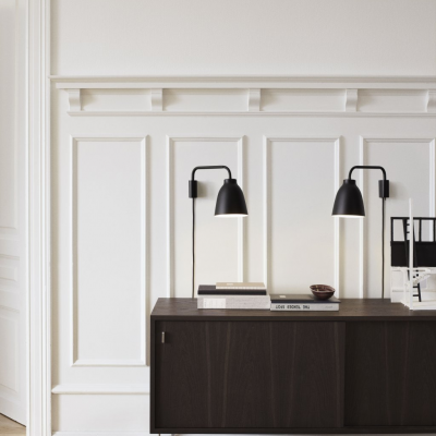 Pútavé závesné svietidlá Carravagio™ boli uvedené na trh v roku 2005 a okamžite si získali status dizajnovej ikony. Vo svietidlách Caravaggio ™ spája návrhárka Cecilie Manz rozpoznateľný tvar s moderným výrazom. Jednoduché nadčasové svietidlo sa skladá z kovového tienidla s jemnými ženskými líniami a pochrómovaného závesného prvku s technickým - mužnejším charakterom. Textilný kábel je obzvlášť dobre integrovaný do dizajnu vďaka čomu nadobúda svietidlo svoj pôsobivý vzhľad. Lampa Caravaggio ™ vrhá koncentrované svetlo nadol osvetľujúce zavesenie aj kábel cez otvor v hornej časti lampy. Hĺbka tienidla zabezpečuje to, že samotný zdroj je skrytý, vďaka čomu Vás nebude oslepovať. Vďaka svojej popularite sa rodina svietidiel Caravaggio rozrástla aj na stojace, stolové lampy a nástenné svietidlá. Dostupné sú v lesklom a matnom povrchu v rôznych farebných prevedeniach.