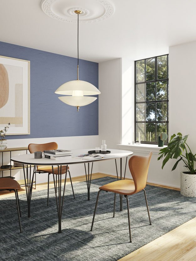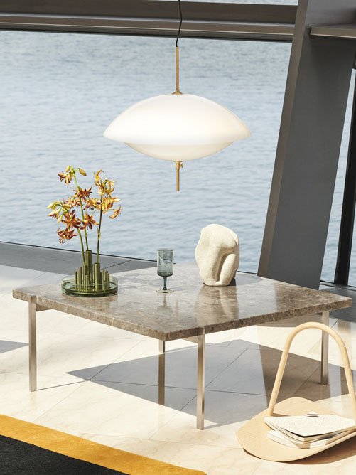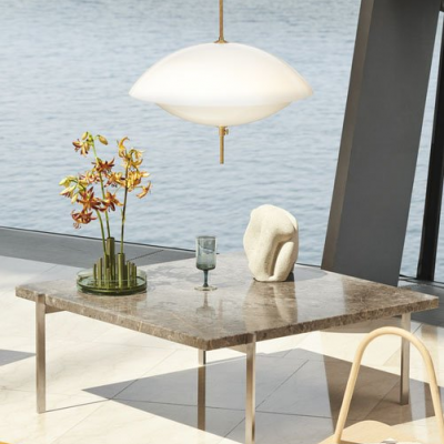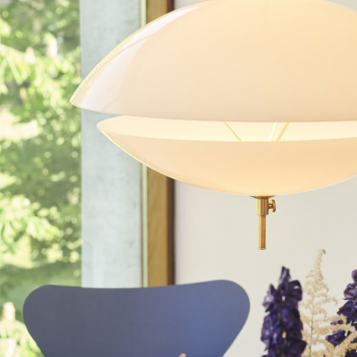 Závesná lampa Clam™ inšpirovaná mušľami z fúkaného opálového skla a mosadze, navrhnutá spoločnosťou Ahm & Lund, sa otvára vďaka čomu je veľmi efektným osvetľovacím prvkom. Súčasný dizajn má nadčasovú estetiku, osvetľuje priestory svetlom zlepšujúcim náladu.