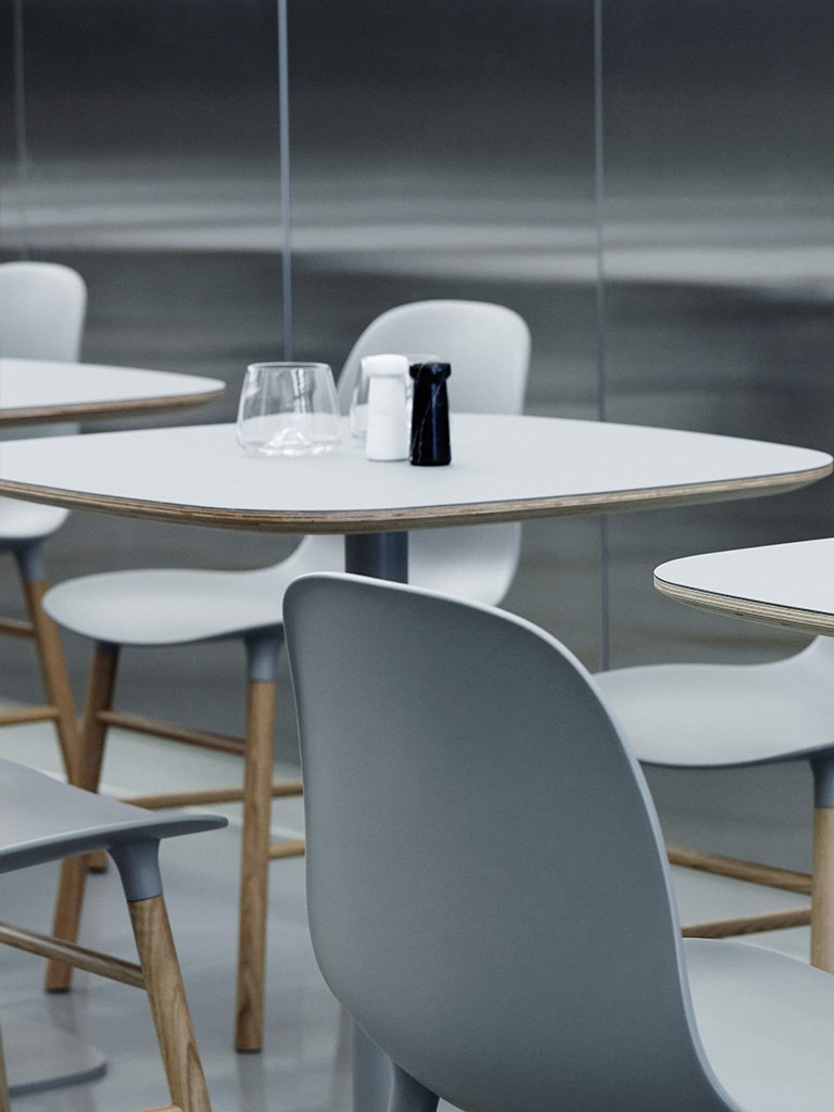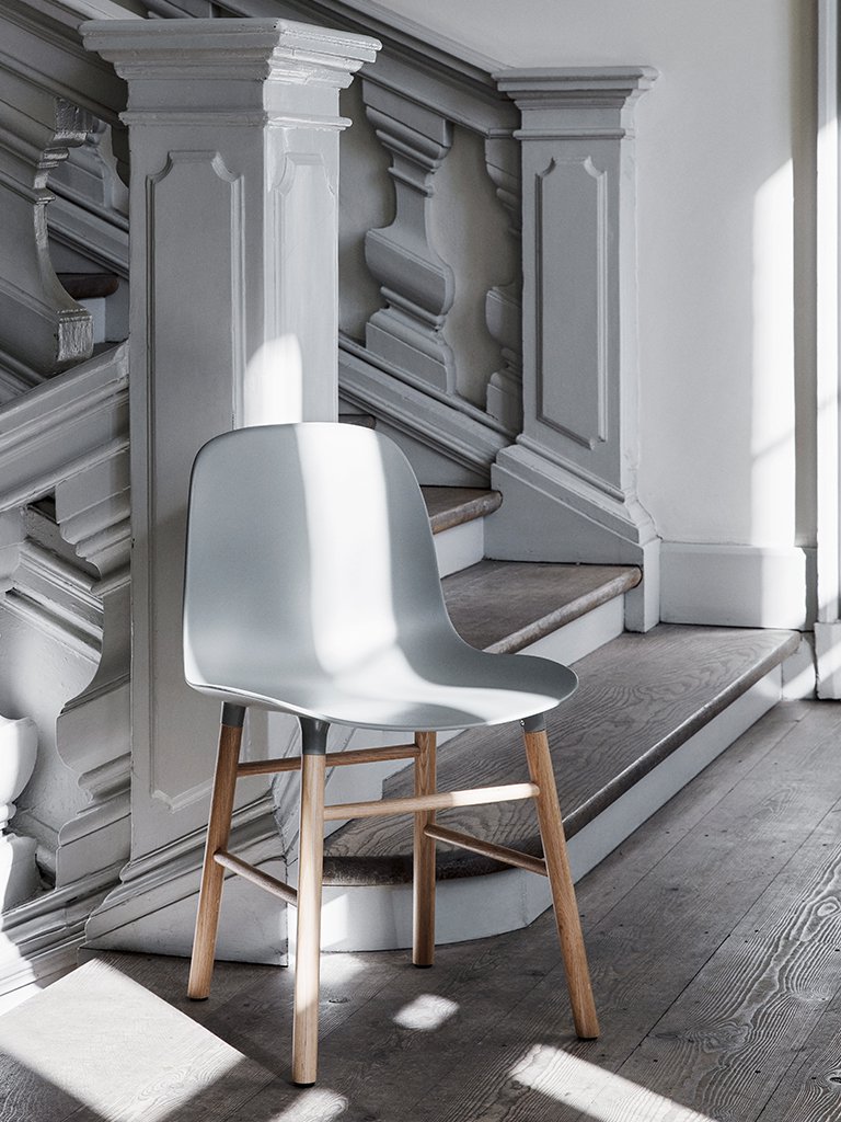 S cieľom vytvoriť škrupinovú stoličku s jednotnejším vzhľadom a novým výrazom Simon Legald vytvoril sériu Form. Pre dosiahnutie plynulého, jednotného vzhľadu vzniklo viac verzzií podnoží a sedákov, ktoré sa navzájom kombinujú. Zakrivené plastové sedadlo a drevená podnož z dubu či orechu, alebo oceľová podnož sú prirodzene integrované do sedadla pomocou nenápadného a jedinečného systému. Celkový dizajn zdôrazňuje vysokokvalitné remeselné spracovanie a jednoduchosť škandinávskeho prístupu. Form je moderná stolička s minimalistickým výrazom. Vďaka jednoduchému a modernému dizajnu má Form Armchair príjemnú siluetu s výrazne obytným vzhľadom. Nohy vyzerajú takmer akoby vyrastali zo škrupiny. Sedáky stoličiek Form poskytujú dobrú oporu chrbta, pričom podrúčky poskytujú zvýšenie komfortu pri sedení. Kombinácia komfortu a čistých tvarov ju predurčuje ako multifunkčnú stoličku do každej miestnosti. Dobre poslúži napríklad ako kancelárska , jedálenská alebo príležitostná stolička.