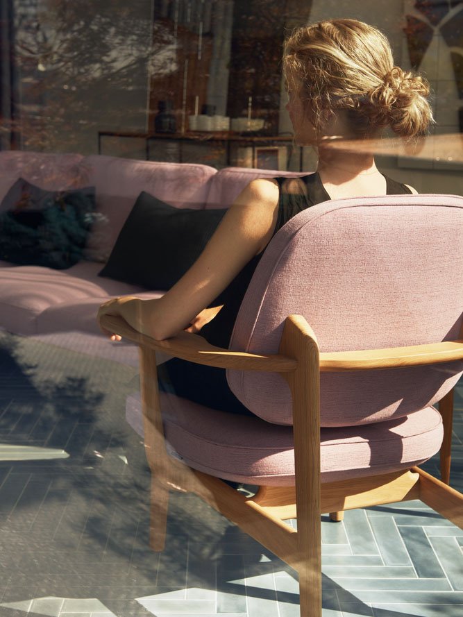 Elegantné kreslo Fred™ s nápaditým retro dizajnom pre pokojné a pohodlné bývanie, navrhol jeden z najvýznamnejších dizajnérov súčasnosti - Jamie Hayon. Má nízku, otvorenú siluetu a vyrezávaný drevený rám, ktorý zaujme precíznosťou ručného remeselného spracovania. Široké, ploché opierky sa starajú o pohodlie rúk a vzpriamené sedenie zabezpečuje podporu chrbtice – ideálne na čas pre socializáciu alebo individuálny relax a čítanie.