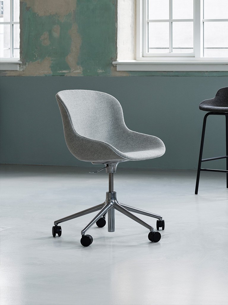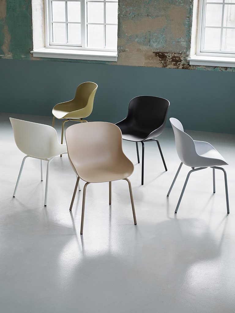 Dvorný návrhár značky Normann Copenhagen - Simon Legald, inšpirovaný dánskou hygge, vytvoril sériu nábytku Hyg. Sériu odštartovali v roku 2018 čalúnené dvoj-miestne pohovky, kreslá a podnožky. V roku 2020 sa tento sortiment rozširuje o jedálenské a barové stoličky, charakteristické organickým tvarovaním navrhnuté so zameraním na komfort pri sedení. Koncept hygge je o dobrom pocite - bezpečnosti, teple a pohodlí, čo je neoddeliteľnou súčasťou identity dánskeho dizajnu a práve tieto vlastnosti sú predlohou kolekcie Hyg. S novými modelmi sa rozšírili možnosti použitia do jedálenských a verejných priestorov. Pocit hygge nie je spojený iba s vizuálnym zážitkom z dizajnu; spočíva v celkovej zmyselnej skúsenosti. Veľa úsilia sa venovalo samotnému tvaru, tak aby poskytol čo najpohodlnejšie sedenie.