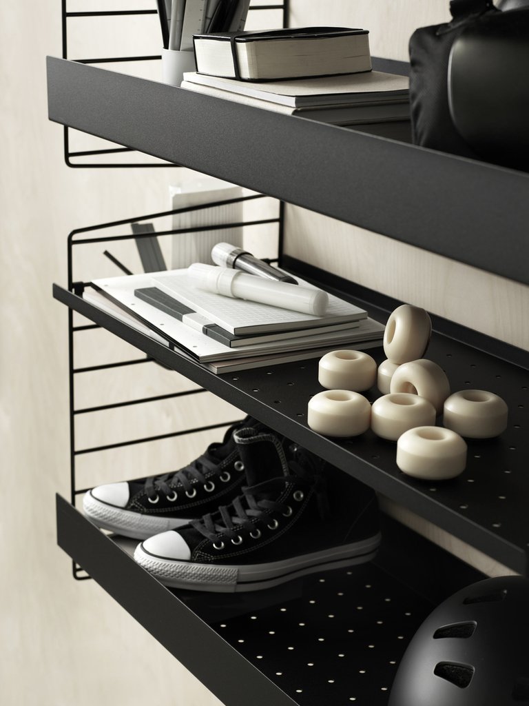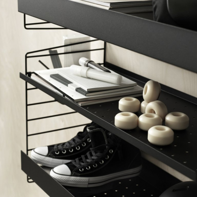 Jednoduché a flexibilné police sú nevyhnutnou súčasťou policového systému String. Pomôžu Vám vytvoriť úložný priestor, ktorý najlepšie vyhovuje Vašim potrebám a preferenciám a ktorý krásne dotvorí akýkoľvek interiér. Navyše, police sa dajú kedykoľvek premiestniť a vytvoriť tak priestor aj pre rozmernejšie veci.