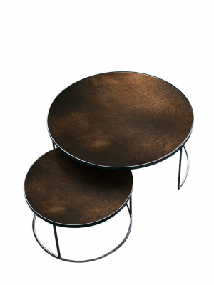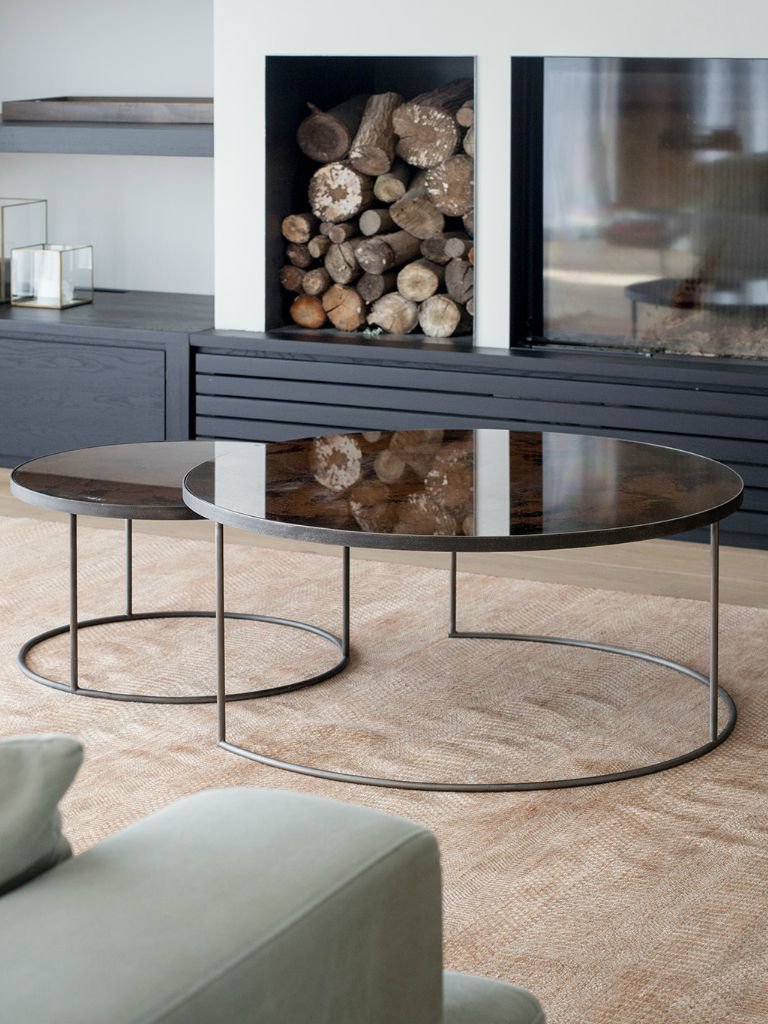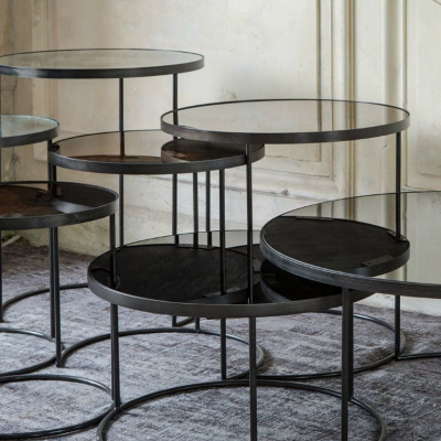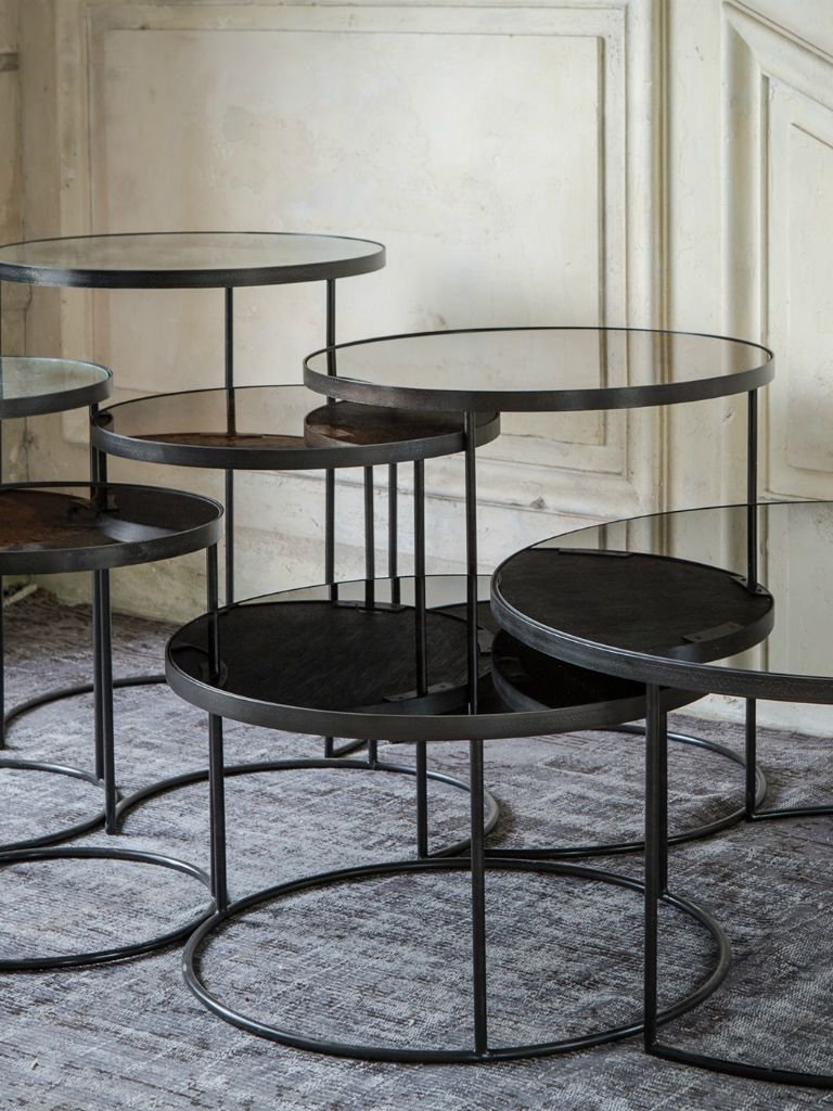 Kolekcia Nesting predstavuje konferenčné stolíky v jedinečných prevedeniach, ktoré hravo vyniknú v každom jednom priestore. Ich zrkadlový povrch s výraznou patinou v kombinácii s kovovým rámom dodajú pocit starobylosti, ale zároveň aj modernej elegancie.