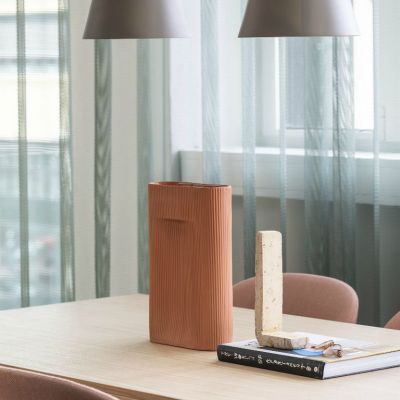 Ridge kolekcia sa vyznačuje nádherným sochárskym dizajnom, ktorého tvar zaujímavo zvýrazňujú elegantné zvislé línie. Váza má veľmi zaujímavý detail priehlbín na oboch stranách, slúžiacich ako nenápadná rukoväť pri ich presúvaní. Pochádza z dielne dizajnérov Studio Kaksikko, ktorí do svojho návrhu zakomponovali nevšednú rafinovanosť a funkčnosť. Vďaka zaujímavému tvaru môžu byť kvetiny namiesto do jednej kytice usporiadané v krásnej línii, no táto atypická dizajnová váza môže byť použitá aj ako individuálne umelecké dielo. Ridge s určitosťou zútulní každý priestor v domácnosti.