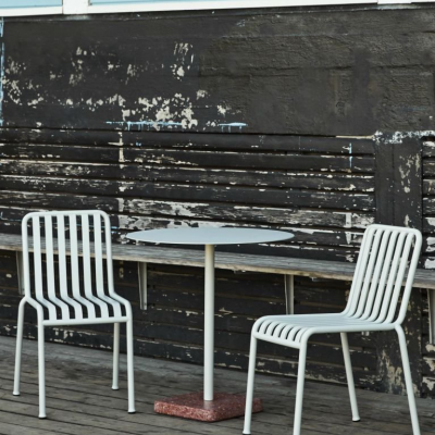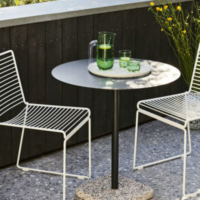 Minimalistický stôl Terrazzo, ktorý pre Hay navrhol Daniel Enoksson už na prvý pohľad očarí svojou nevšednosťou. V podstate je to len jednoduchý oceľový stôl, ktorého zaujímavý kontrast vytvára blok z teraca, slúžiaci aj pre udržanie stability. Dizajnér v tomto betónovom materiáli videl neskutočný potenciál a to hlavne pre jeho krásny vzhľad, trvácnosť a odolnosť voči vonkajším vplyvom prostredia.
