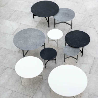 Elegantný a praktický konferenčný stolík Twist spĺňa všetky predpoklady na ideálny interiérový, aj exteriérový stolík. Vďaka modernému dizajnu a vysokej kvalite spracovania je tento stolík perfektným doplnkom do obývacieho priestoru, alebo na rozjasnenie Vášho sedenia na terase. Veľmi ľahko sa udržiava, stačí ho pretrieť vlhkou handričkou. Môže byť použitý individuálne, alebo v kombinácii Twist stolíkov dvoch ďalších veľkostí. Stolík je vyrobený z ľahkého hliníkového rámu a stolovej dosky z HI-Core, keramiky, alebo kompaktného laminátu (HPL).